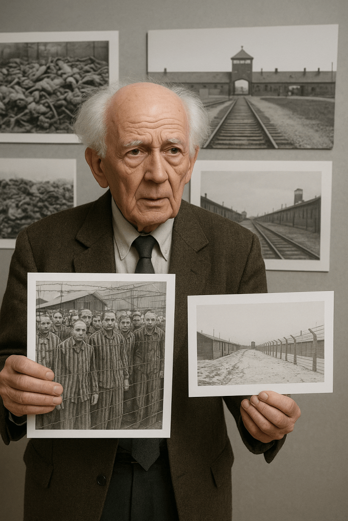 Sociologist Zigmunt Bauman showed some pictures about the Holocaust in The Second World War (1939-1945)
