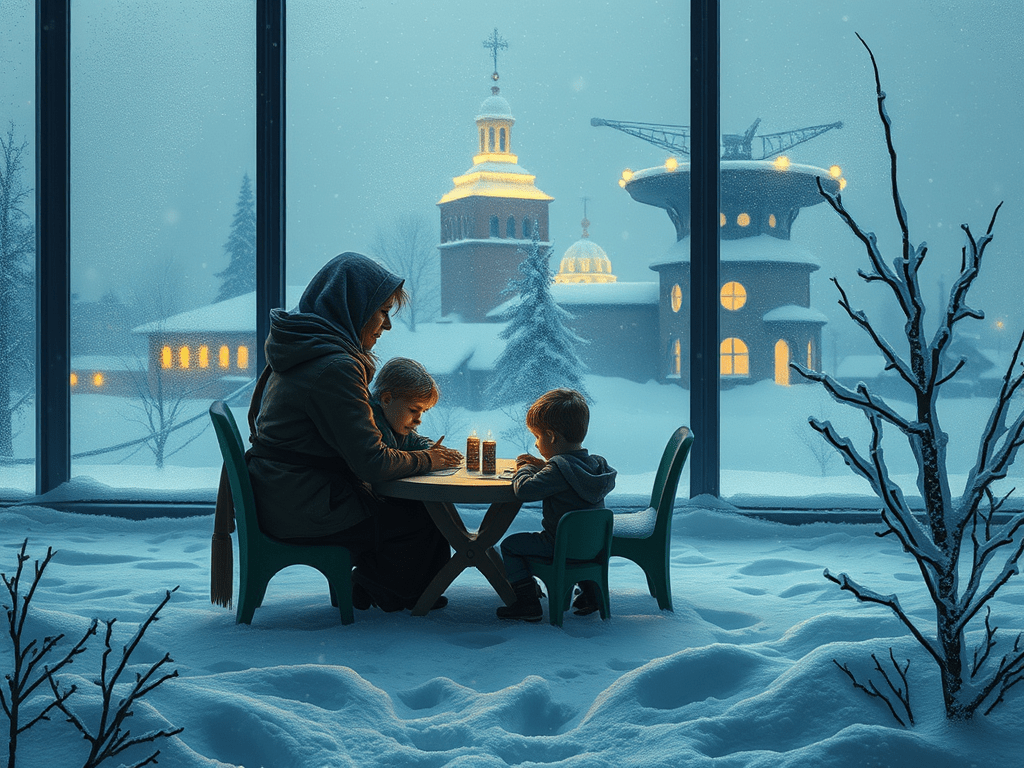 Vilma todos os dias entrava na fila da comida mas sĂł lhe davam caldos de sopa que mal dava para alimentar duas crianças, que somente ansiavam em sair daquele lugar o mais rápido possĂvel. Depois daquela rotina extenuante, Vilma retornava para a sua barraca — que ficava ao ar livre — rezando para que nenhum drone os encontrasse desatentos e preocupados com as noites cheias de barulhos e explosões sem fim.