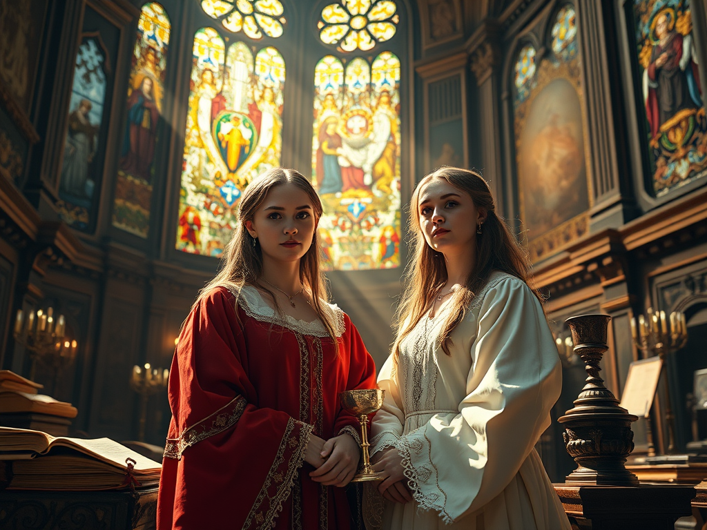 Sinopse da Obra: No ano de 2872 no Brasil, um bebê foi abandonado na porta de um mosteiro onde vivia diversos franciscanos. O bebê sendo uma menina, acabou se desenvolvendo muito bem no meio de todos aqueles homens que ela considerava como pais. Porém, os frades contavam para a menina que ninguém nunca tinha conseguido encontrar os seus pais biológicos e isso para a criança era algo de extrema tristeza em seu coração. Enquanto isso, em Coimbra, em Portugal; uma família sem condições financeiras resolveu ceder a sua única filha, para que ela pudesse se tornar uma freia, levando-a a um convento onde ela se tornaria uma religiosa enclausurada. Os anos foram se passando e as duas meninas resolveram continuar os seus estudos em Teologia e Filosofia no Vaticano, com as orientações devidas do Papa. Mas o que elas não poderiam imaginar era que ao chegar no local, as lendas sobre o Santo Graal, os cavaleiros templários e a descendência real de Jesus de Nazaré e de Maria Madalena, que elas sempre leram desde criança, pudessem ser verdade, gerando com isso, diversas consequências para a própria igreja católica em questão. Como a Igreja Católica irá reagir com todas essas revelações? Qual será os papéis dessas duas meninas para a igreja católica? Como os fiéis irão reagir quando descobrirem que tudo aquilo em que eles mais acreditaram durante séculos e mais séculos de história, possa estar a prova de contestações? Essas e outras perguntas serão respondidas ao longo desse romance histórico.