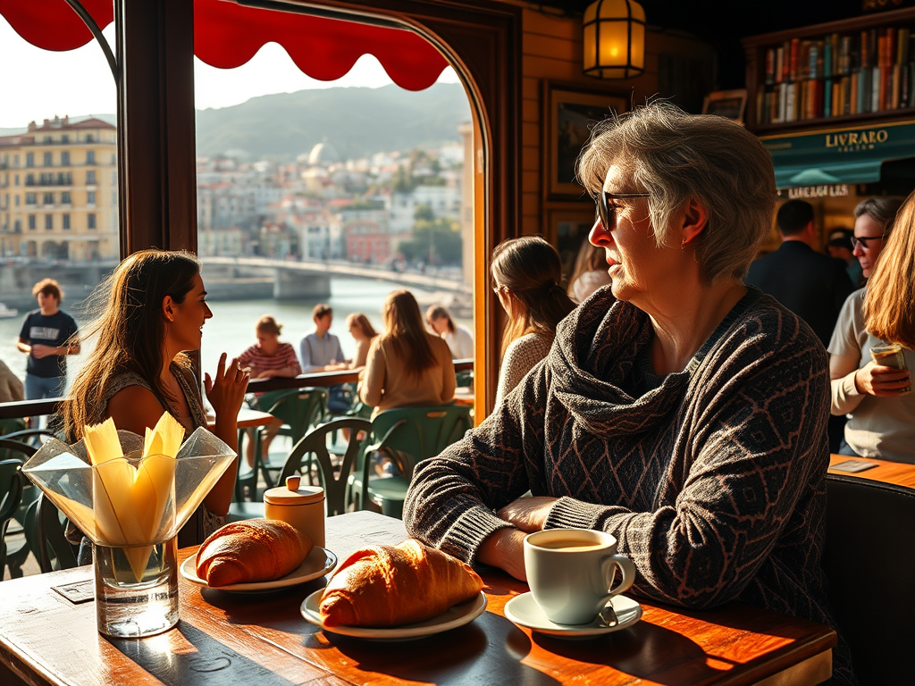 Ágata estava mais leve e desimpedida. Como ela sentiu falta de suas amigas de Portugal que à faziam pensar na infância deixada no Brasil. Todo dia, pontualmente, todas elas se reuniam em seus cafés preferidos para falar sobre a vida deixada para trás. Tomavam café e comiam croissant no Rio Douro no Porto, enquanto observavam os barquinhos que passavam anunciando o vinho Taylor’s de fabricação própria.